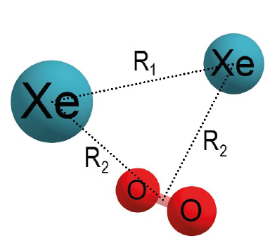van der Waals binding of O2 with Xe2 in Xe2-O2 complex was determined to be 314 ± 30 cm‑1, and the structure