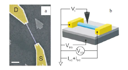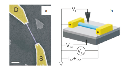 We report on the low temperature measurements of the magnetotransport in Si-doped InAs quantum wire in the presence of a charged tip of an atomic force microscope serving as a mobile gate, i.e. scanning gate microscopy (SGM). By altering the carrier concentration with back gate voltage, we transfer the wire through several transport regimes: from residual Coulomb blockade to nonlinear resonance regime, followed by linear resonance regime and, finally, to almost homogeneous diffusion regime. We demonstrate direct relations between patterns measured with scanning gate microscopy and spectra of universal conductance fluctuations in the dependence of conductance on magnetic field (R-1(B)). Additionally, a clear sign of fractal behavior of R-1(B) curve is observed for non-linear and linear resonance transport regimes.